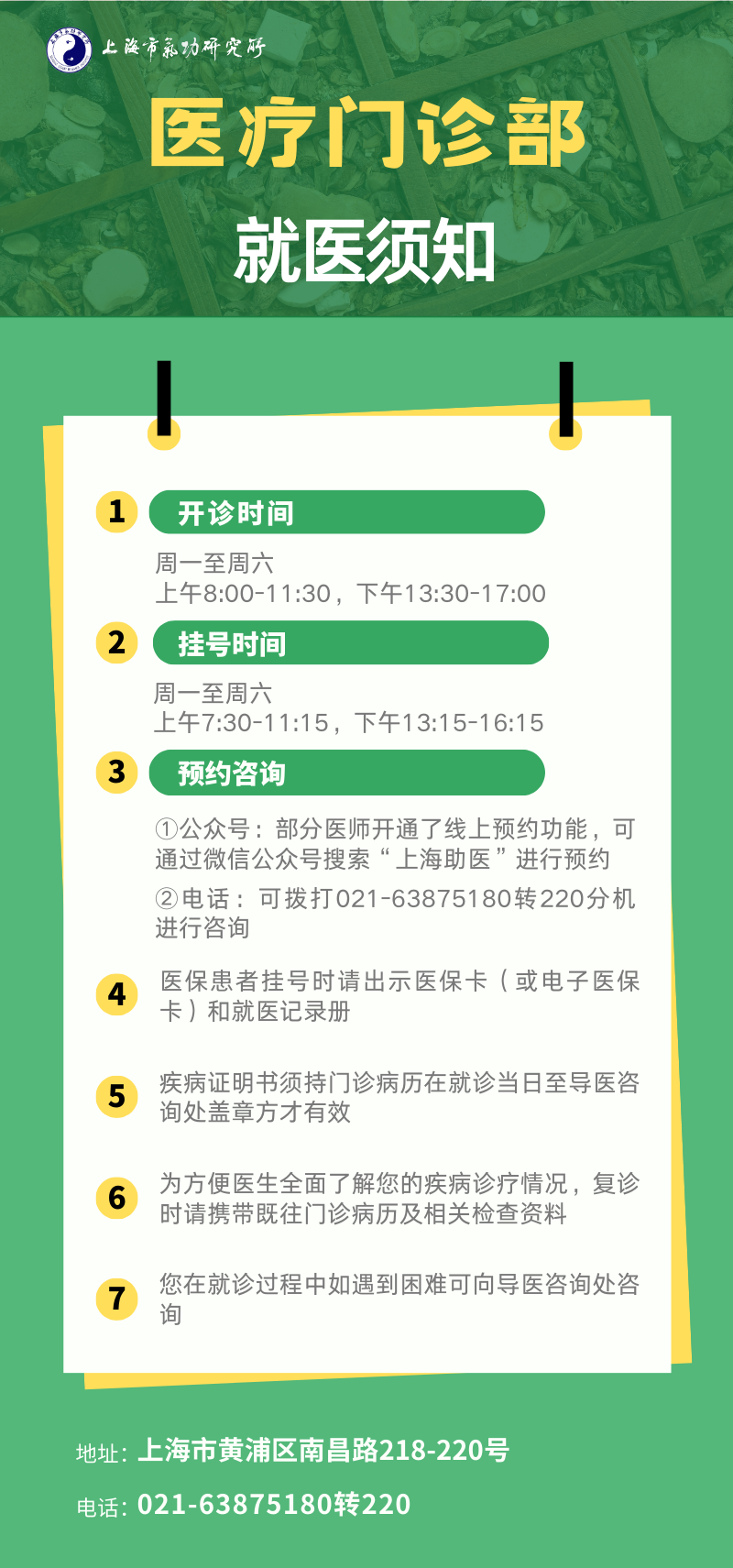 上海市气功研究所医疗门诊部就诊须知